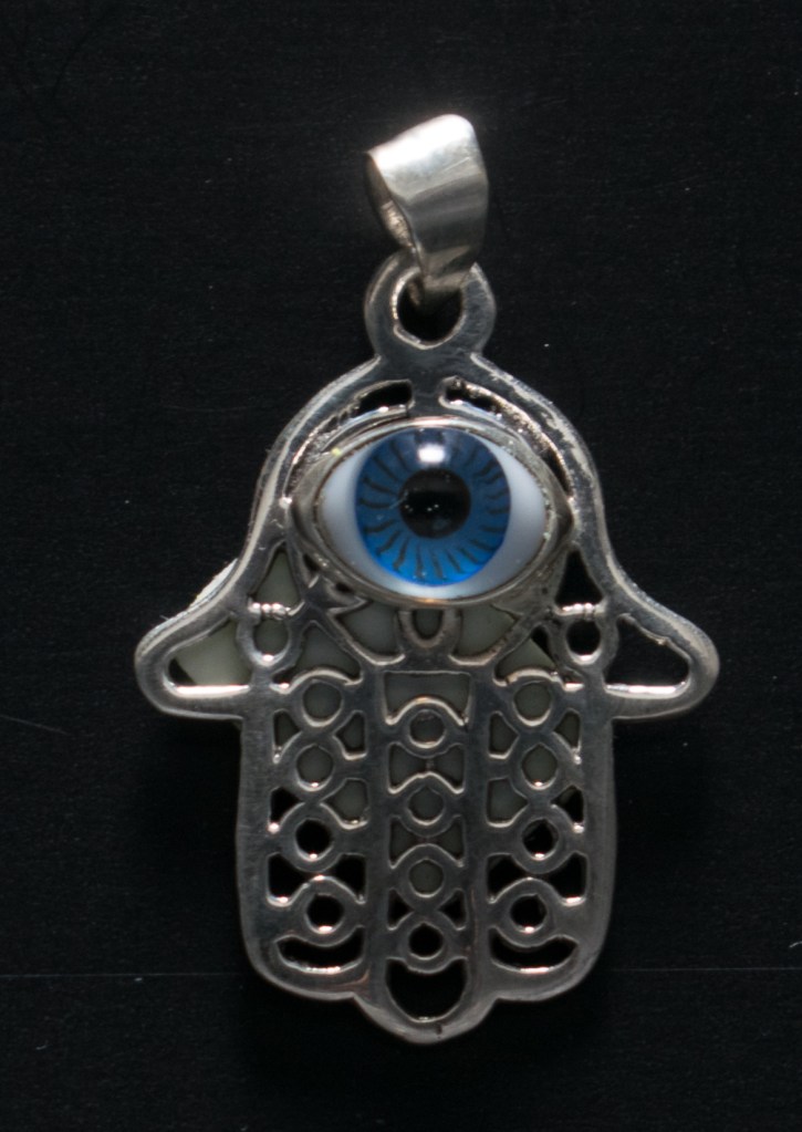 Manita de Fátima con ojo de cristal color verde.