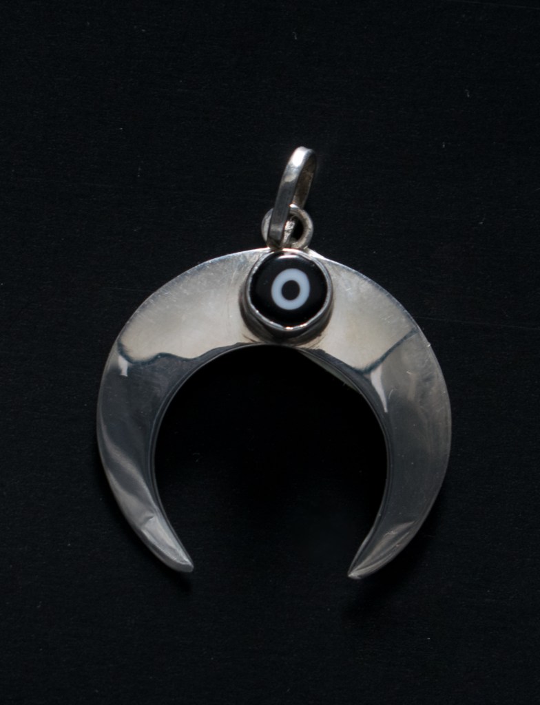 Dije cuernos de luna en plata con ojo turco mide 30 mm de diámetro.$ 1100