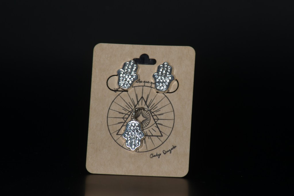 Set manita de Fátima dije y aretes en plata con Zirconias. $900