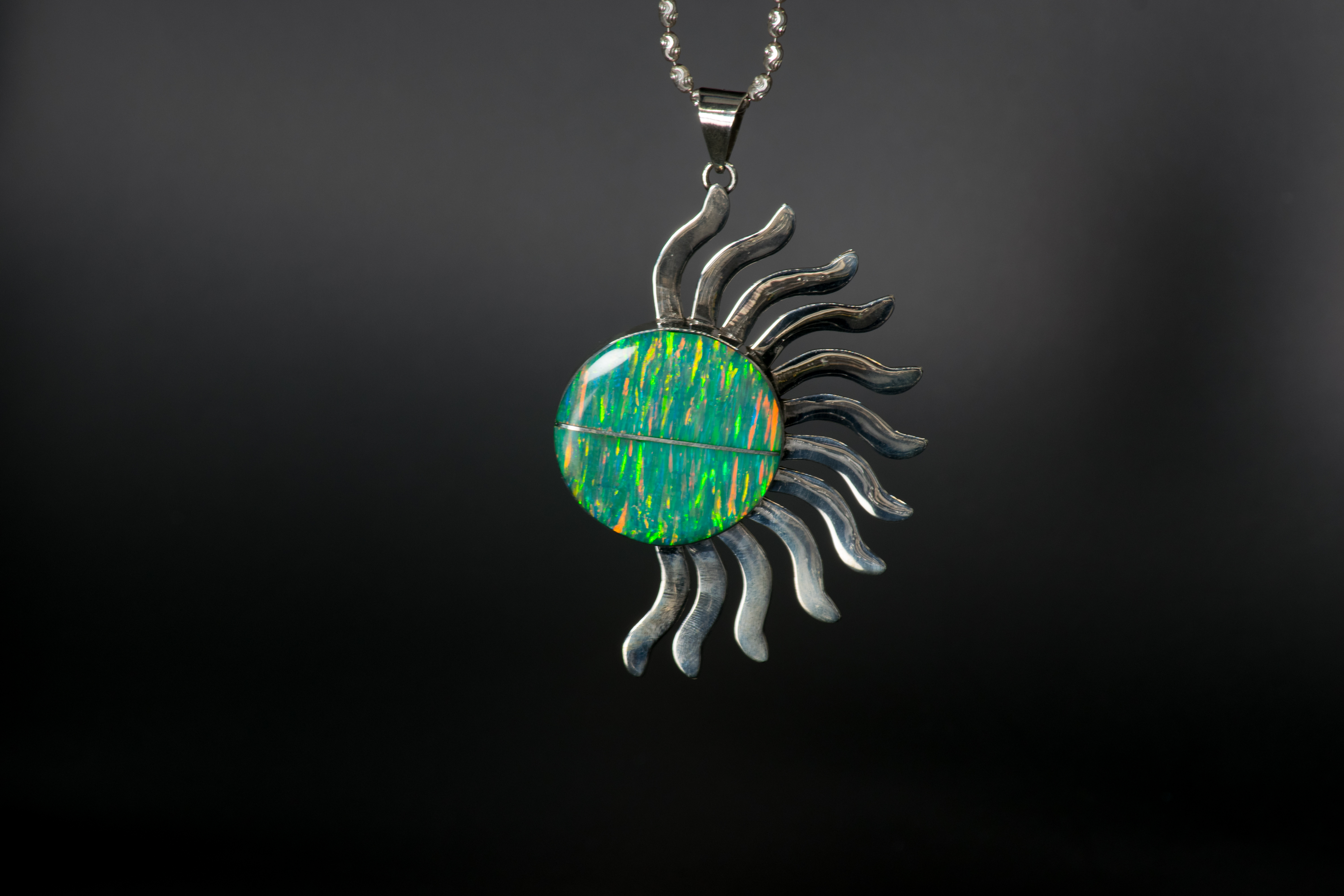 Sol de Ópalos color verde con montura de plata