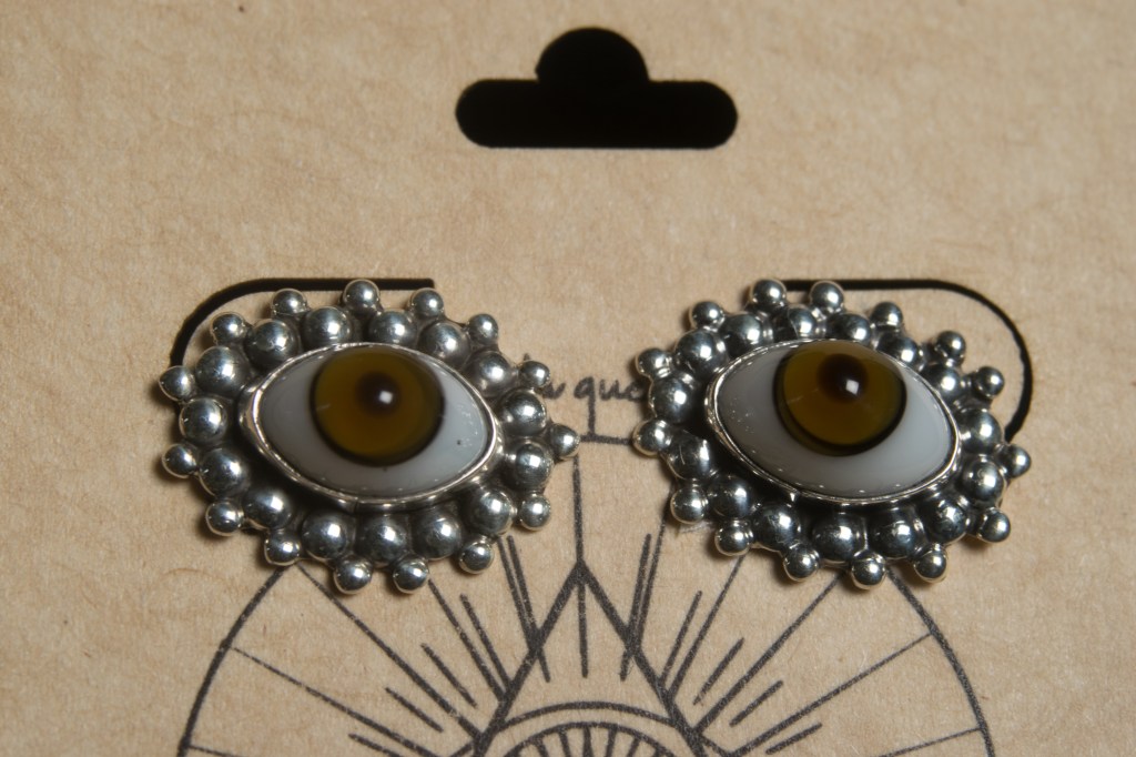 Arracadas ojos en plata, miden (35mm de diámetro). $ 550